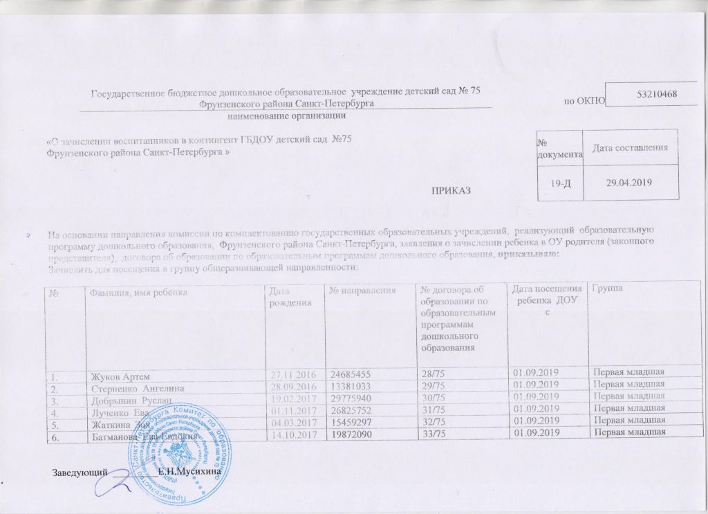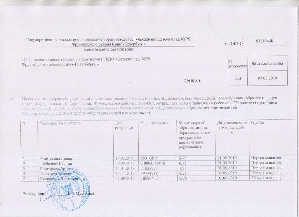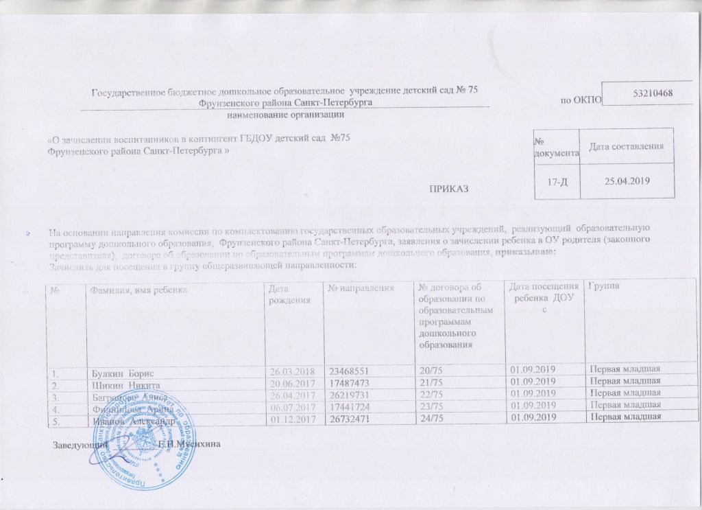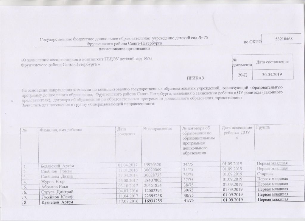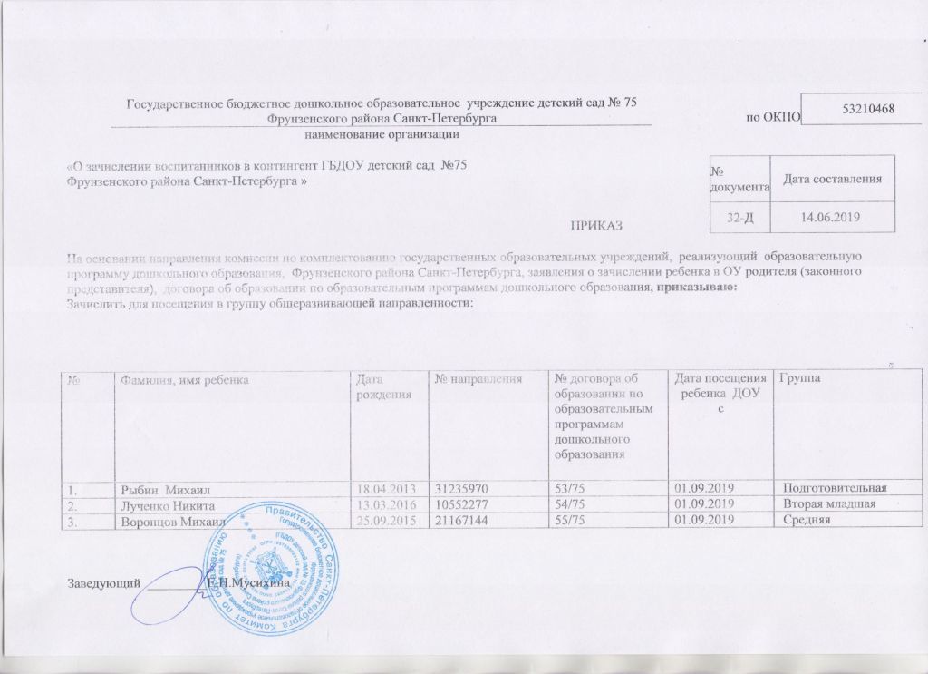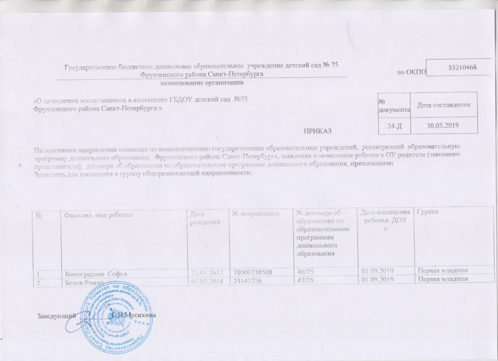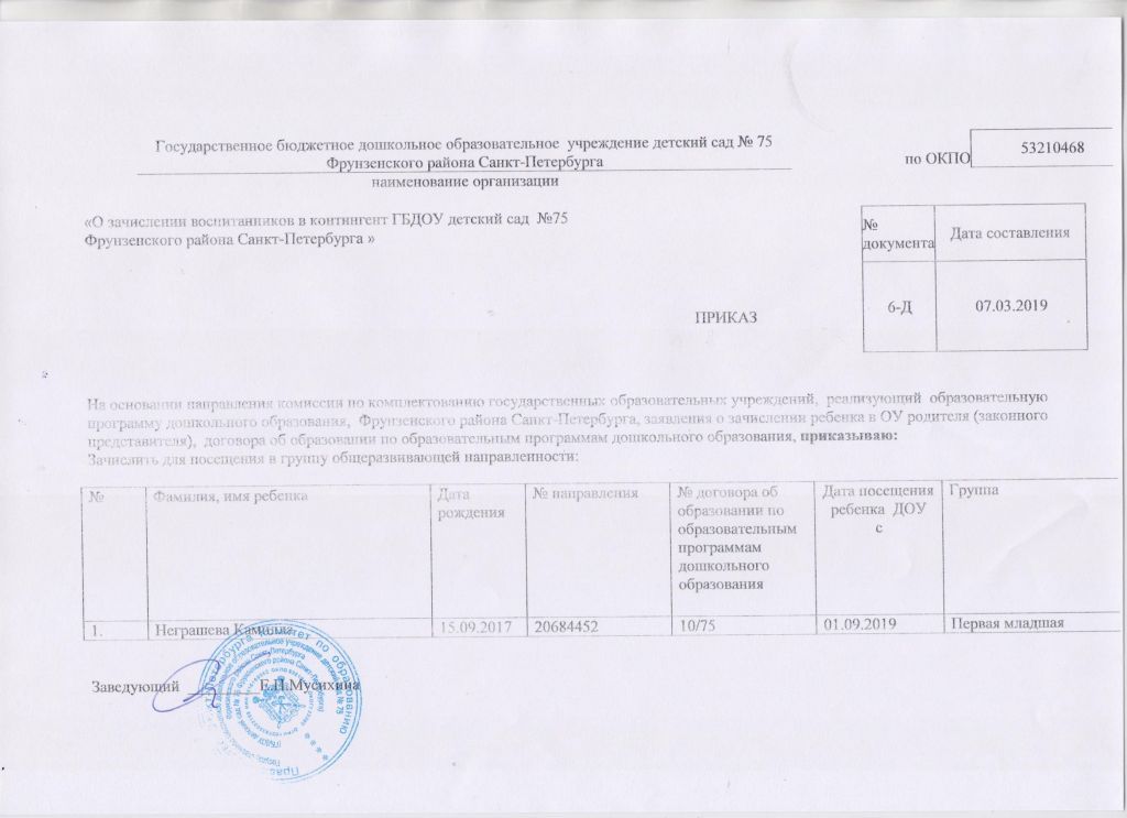 Распорядительный акт о зачислении ребенка в образовательную организацию